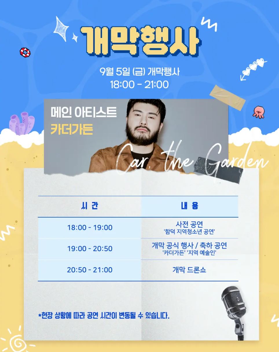 - 개막 드론라이트쇼·워터밤 콘서트·로컬 스테이지