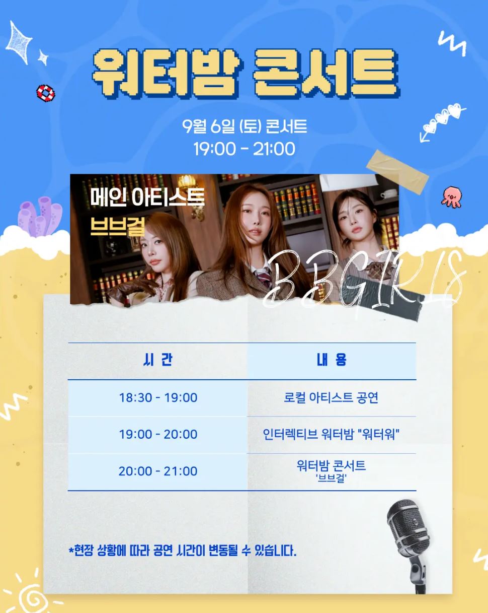 - 20:00 - 21:00: 워터밤 콘서트 '브브걸'