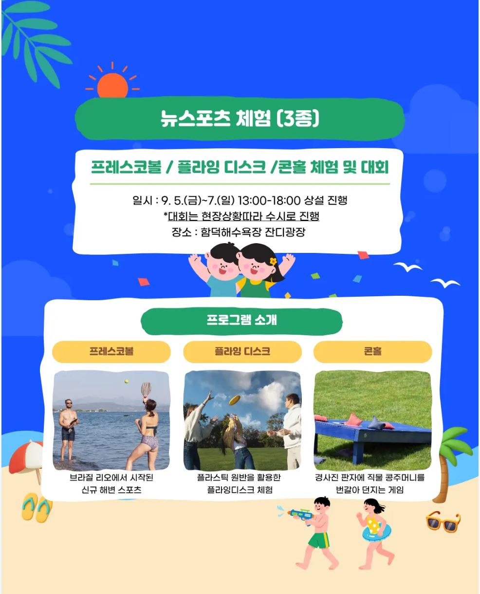 - 뉴스포츠 (플라잉디스크, 프레스코볼, 콘홀) 체험 및 대회 / 에코미션 챌린지