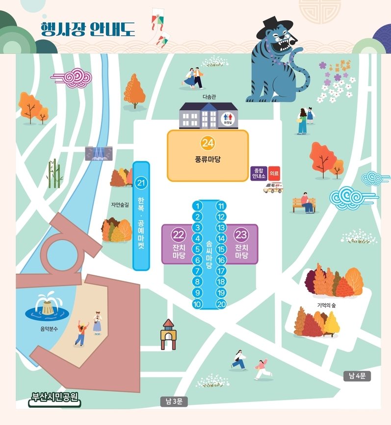 | 전통놀이 체험 | 10.25~10.26 / 11:00~17:00 | 잔디광장 | 줄다리기, 투호던지기, 굴렁쇠 굴리기 등 |