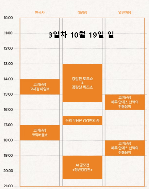 - 📅 10월 19일(일) — 강감찬 토크쇼·퀴즈쇼, AI 공모전