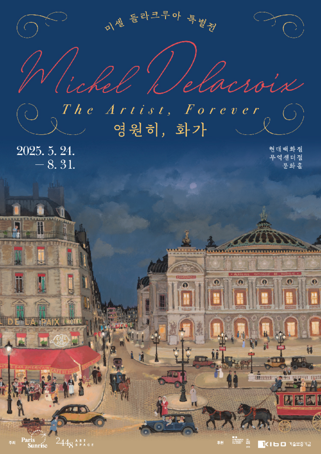 파리의 낭만을 화폭에 담아내는 세계적인 화가 미셀 들라크루아(Michel Delacroix)의 특별전이 현대백화점 부역센터점에서 개최됩니다. 93세의 나이에도 왕성한 창작활동을 이어가고 있는 작가의 전 세계 최초 공개 신작(2023~2025년 작) 포함 총 120여 점의 작품을 만날 수 있는 소중한 기회입니다.