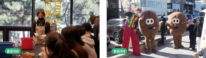 - 체험존(유료) : 커피 추출체험, 로스팅 체험, 커피박 체험, 드립백 체험 등