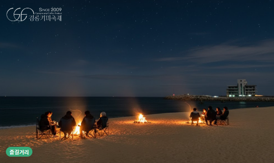 - 불꽃놀이 포인트는 안목해변 바다 방향 기준 왼쪽 라인에서 관람 추천!