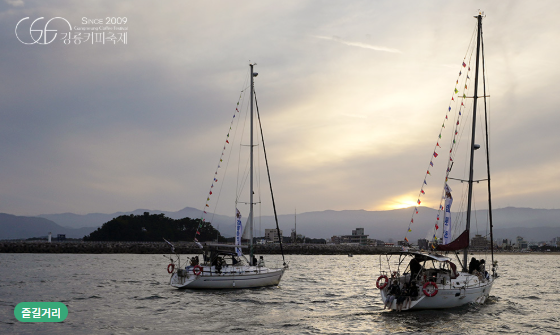 - 커피 웨이브 : 강릉 바다 위 하얀 요트에서 즐기는 커피 한 잔의 낭만. (사전예약or현장접수, 1일 7회 이상)