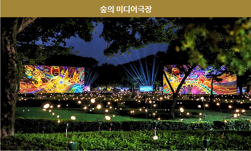 장안공원 전역이 빛과 미디어아트로 물드는 야간 전시 공간.