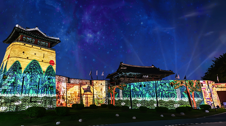 수원화성 미디어아트는 세계적 문화유산인 수원화성을 배경으로 창조적이고 혁신적인 빛의 예술로 풀어낸 초대형 미디어아트 축제입니다.