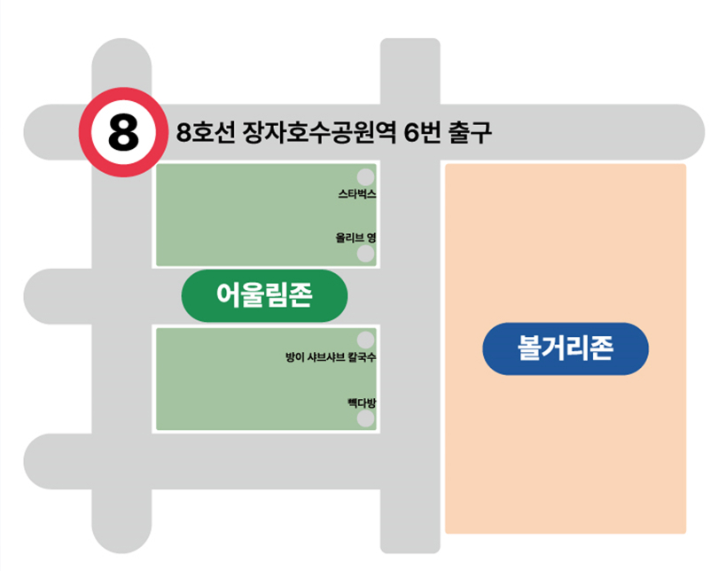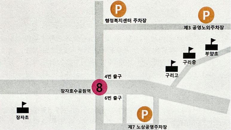 8호선 장자호수공원역 6번 출구 → 도보 1분