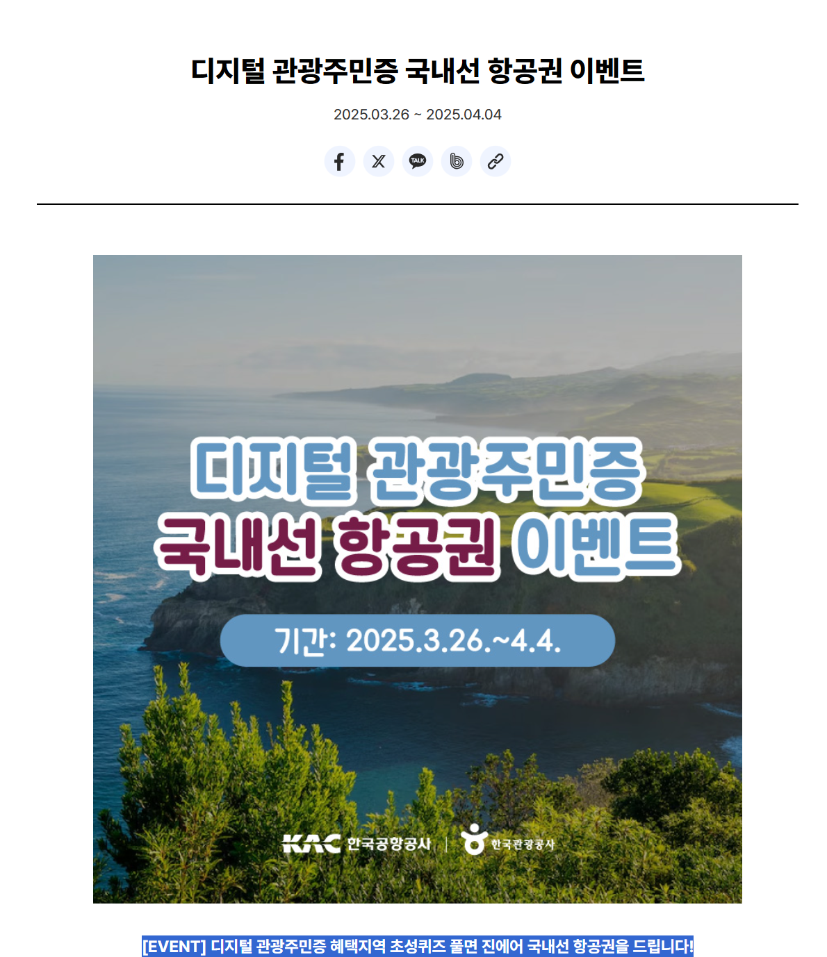 디지털 관광주민증 국내선 항공권 이벤트 신청하기
