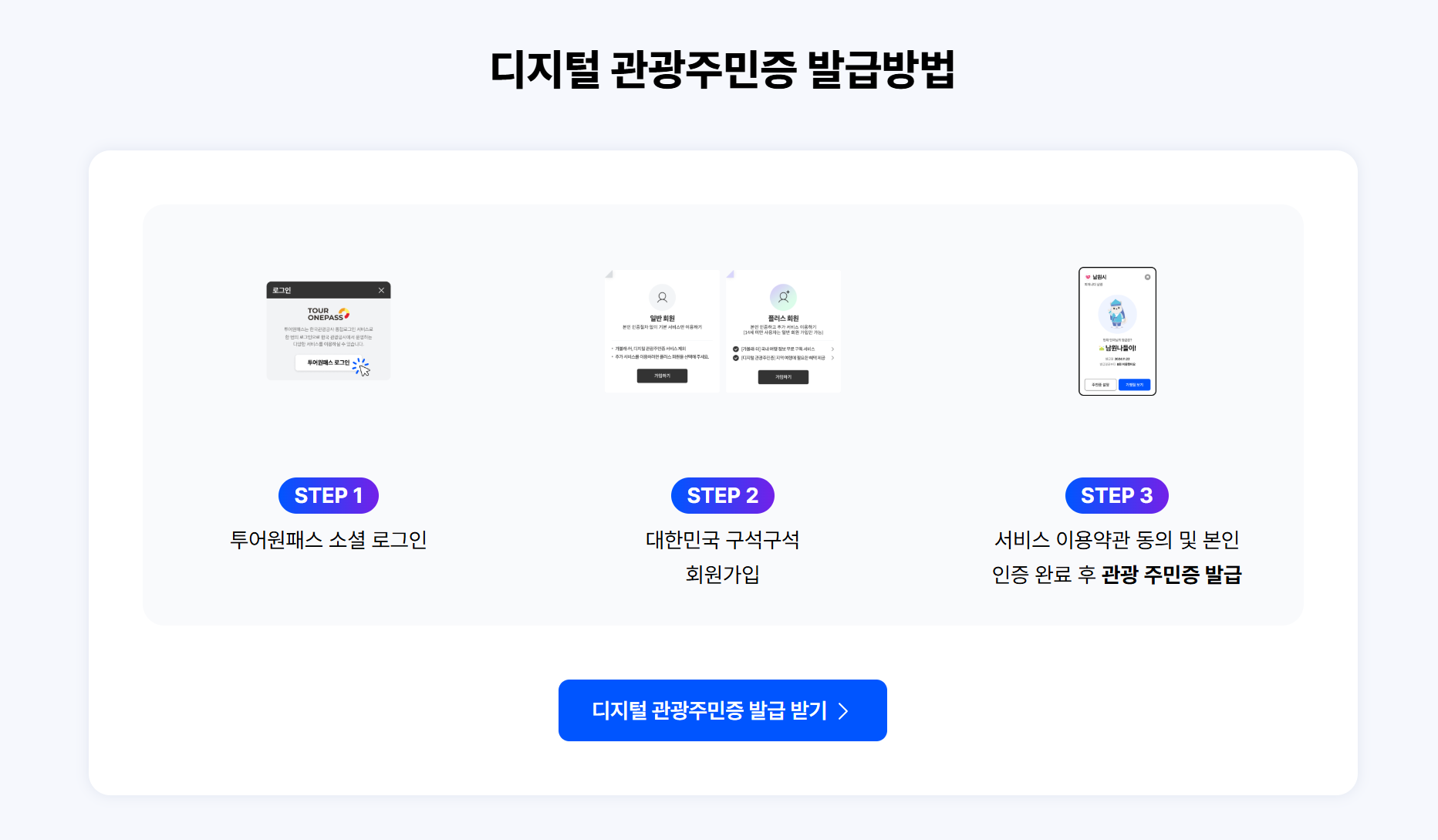 디지털 관광주민증을 발급받는 방법은 간단합니다. 다음의 단계를 따라 진행하시면 됩니다: