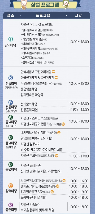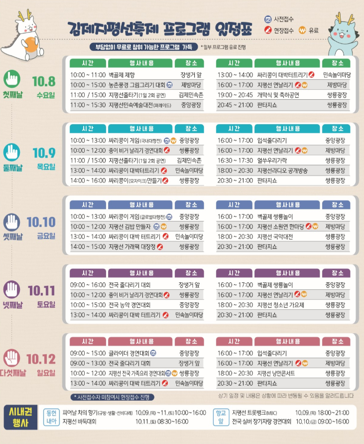 🎉 주요 프로그램: 개막식, 씨름 대회, 전국 농악 경연대회, 지평선 판타지 멀티미디어쇼, 청소년 가요제 등