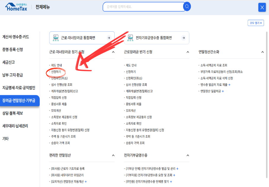 장려금·연말정산·전자기부금 → 근로·자녀장려금 신청