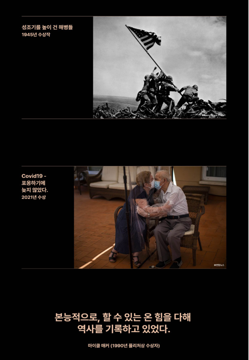 특히 1945년 수상작인 '성조기를 높이 건 해병들' 사진과 2021년 코로나19 팬데믹 관련 수상작 등 시대를 대표하는 명작들을 만나볼 수 있습니다.