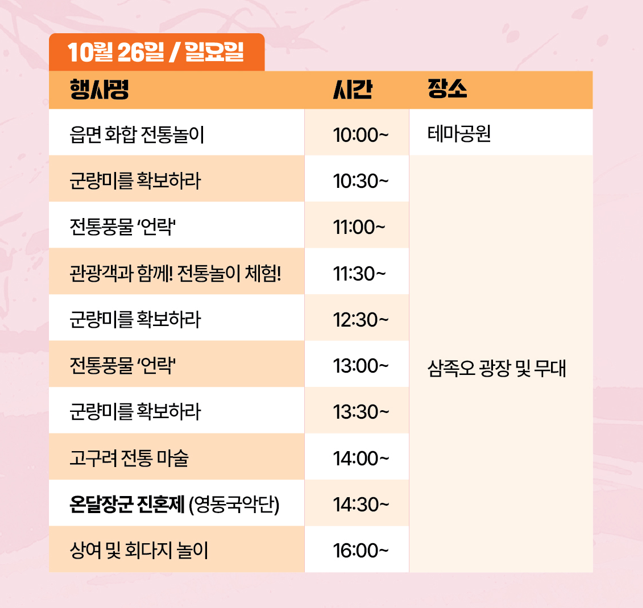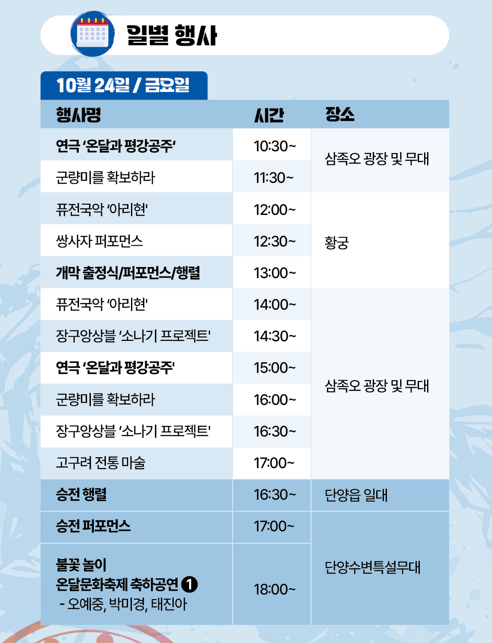 | 주최/주관 | 온달문화축제추진위원회 / 단양문화원 |