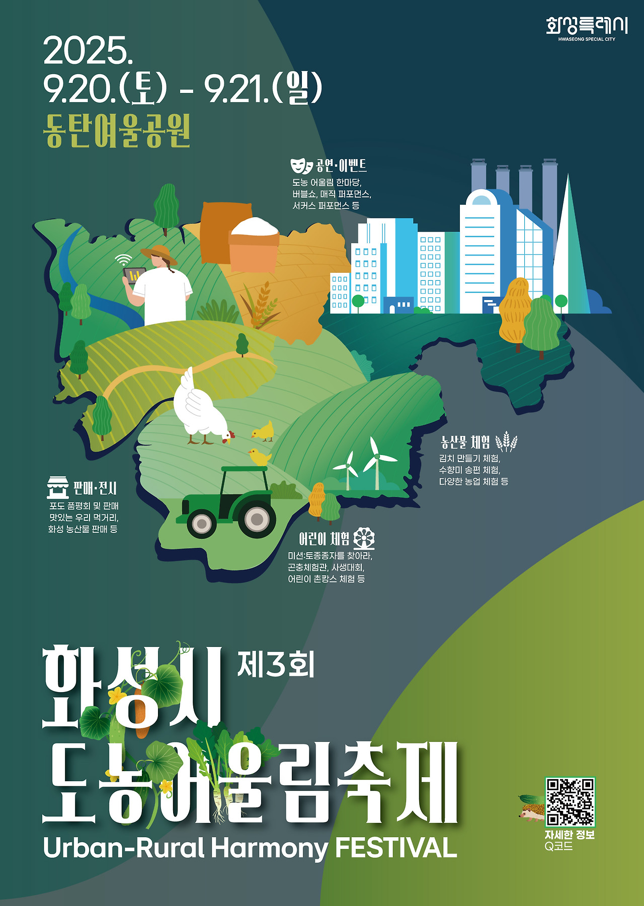 🎉 2025 제3회 화성시 도농 어울림 축제가 9월 20일(토)부터 21일(일)까지 동탄여울공원에서 열립니다!