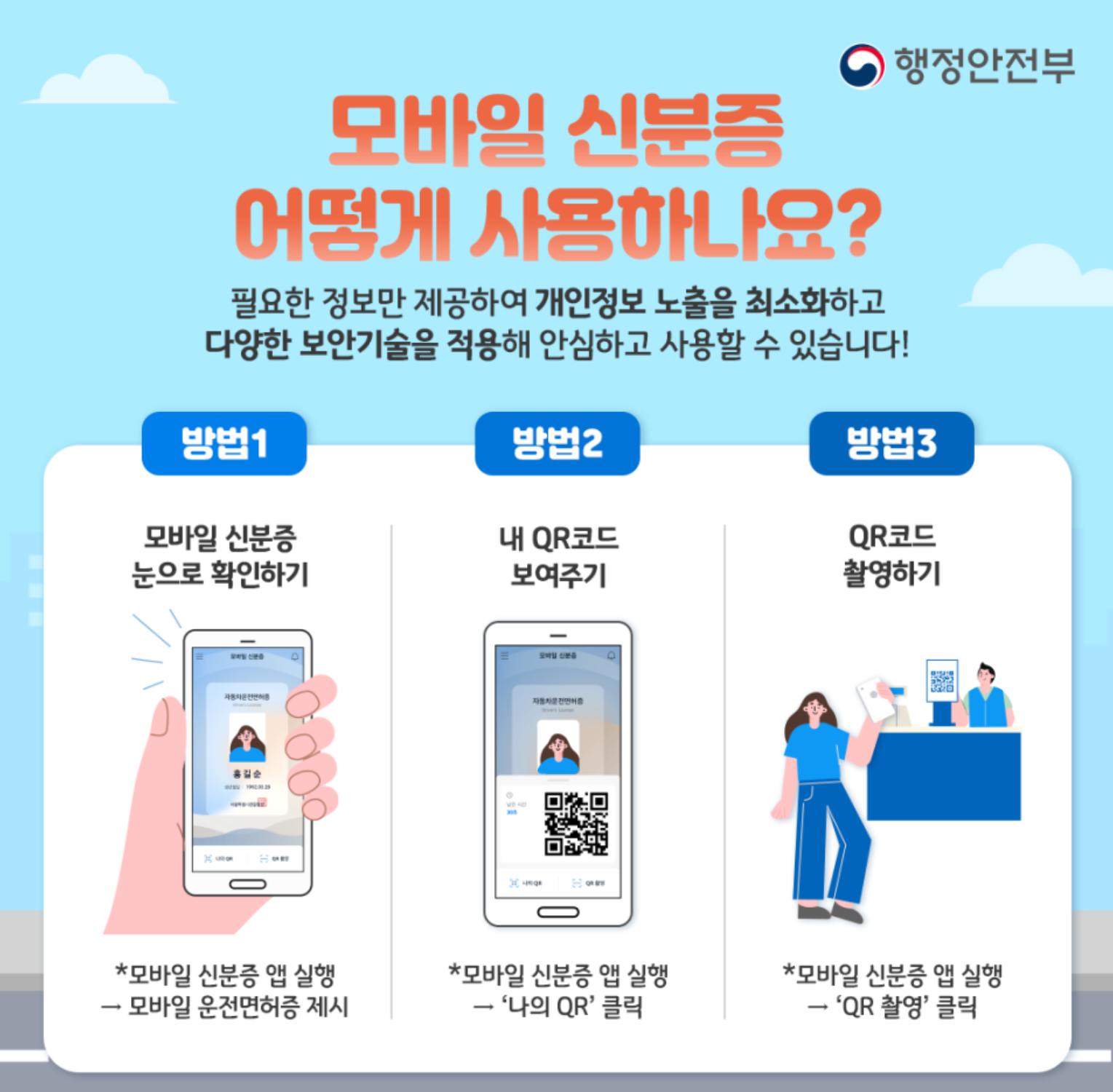 - 제한 사항 : 모바일 신분증은 특정 서비스에서만 사용이 가능하므로, 사용 전에 확인이 필요합니다.