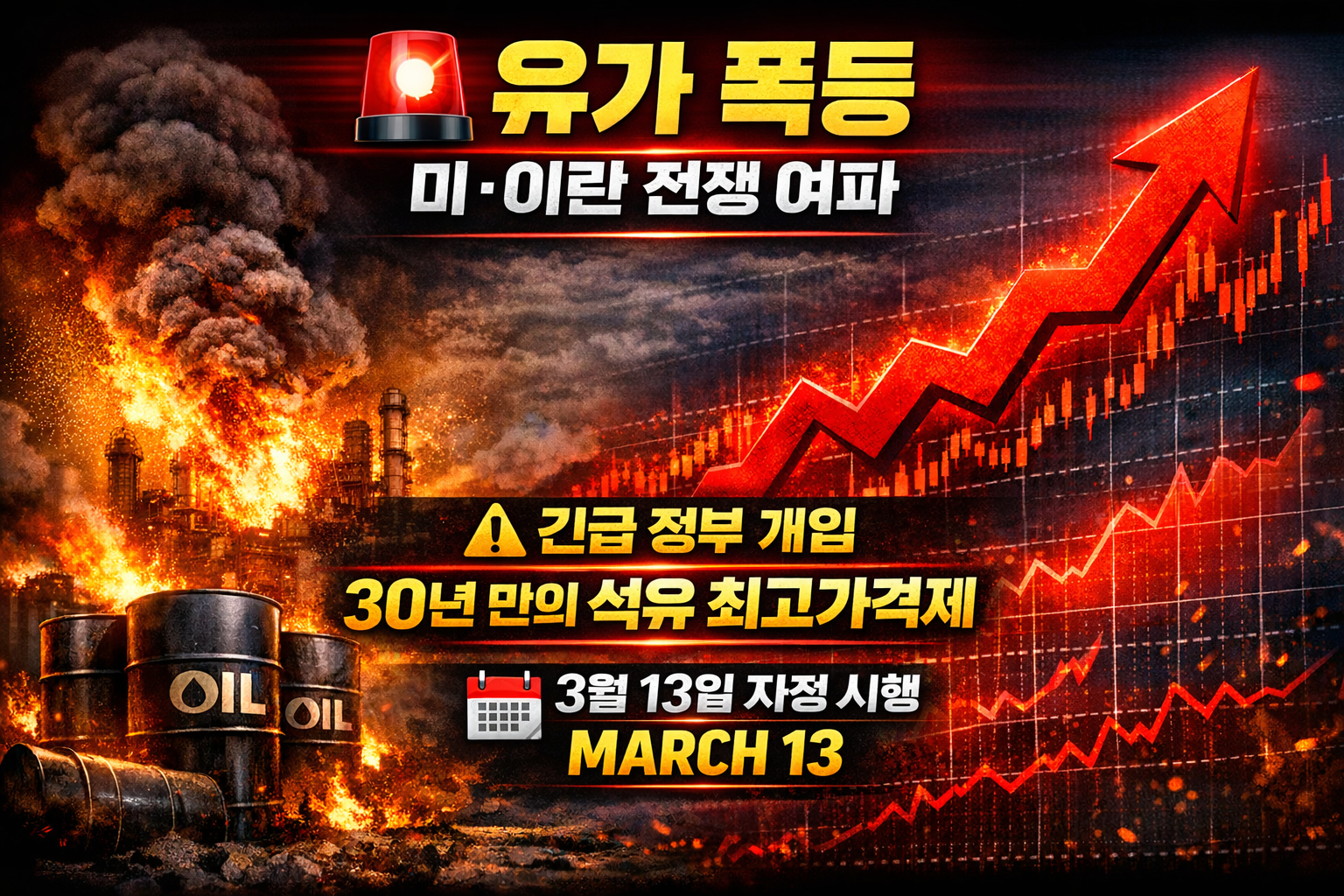 미국-이란 전쟁 여파로 기름값 폭등... 정부, 3월 13일 0시 전격 시행!