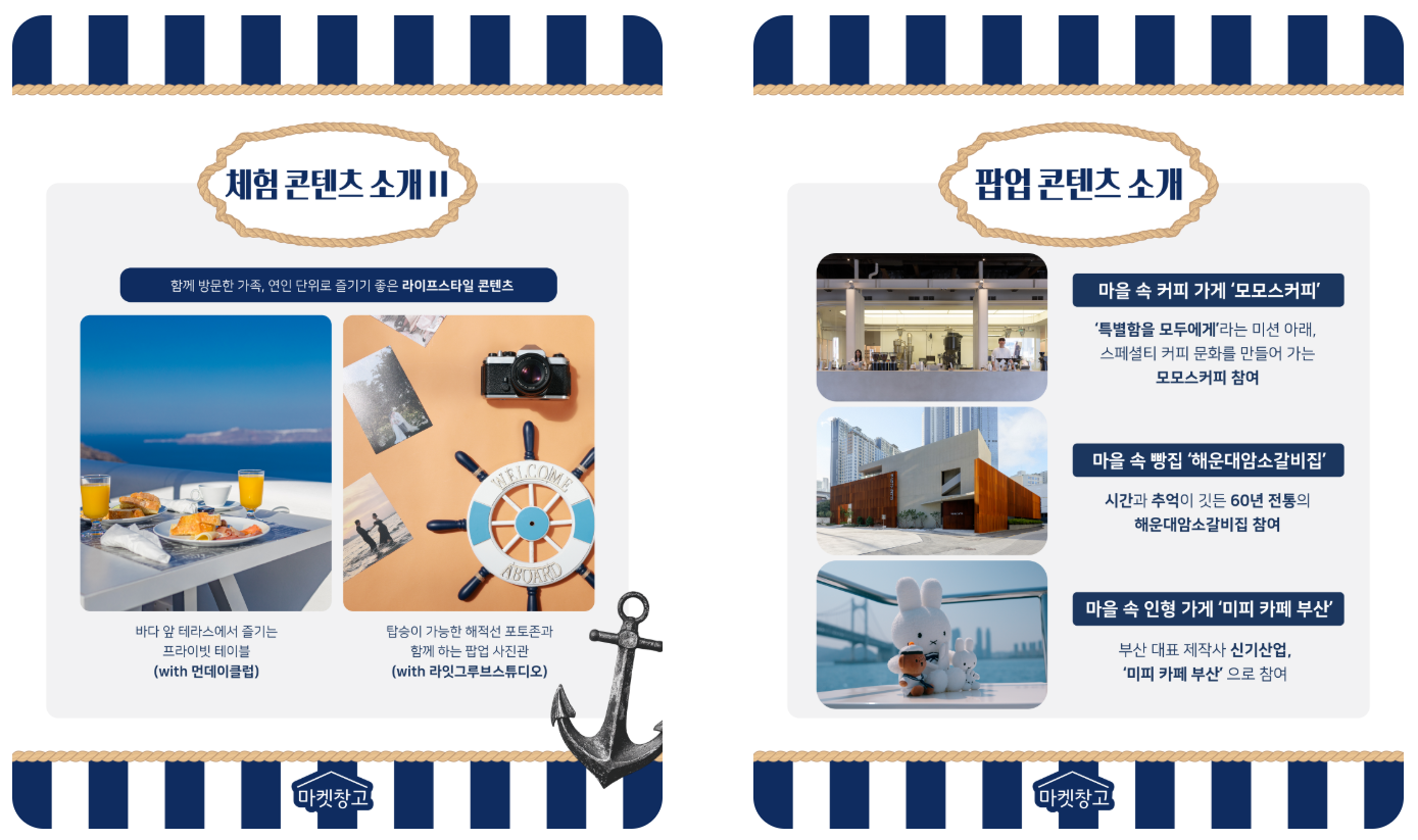 2025년 포트 빌리지 부산은 북항재개발사업의 일환으로, 과거 항만 중심지였던 북항이 시민들을 위한 문화공간으로 탈바꿈하는 모습을 보여줍니다. 특히 올해는 부산항 제 1부두가 미식과 라이프스타일이 어우러진 '유럽 항구 마을'로 변신한다고 합니다. 포트타워와 해양문화지구가 새롭게 문을 열어 더욱 다채로운 프로그램이 준비되어 있습니다. 또한 부산의 지역성과 해양문화를 결합한 독특한 콘텐츠로 국내외 관광객들에게 부산만의 매력을 선보일 예정이에요!