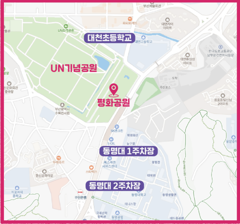 | 동명대학교 제1·2주차장 | 남구 신선로 428 | 약 250대 | 도보 10분 |
