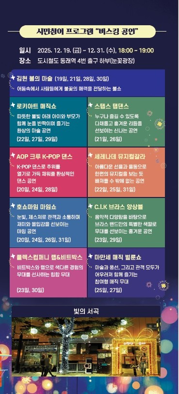 | 2025.12.19 ~ 12.31 | 14:00 ~ 22:00 | 수안초등학교 앞 온천천 |