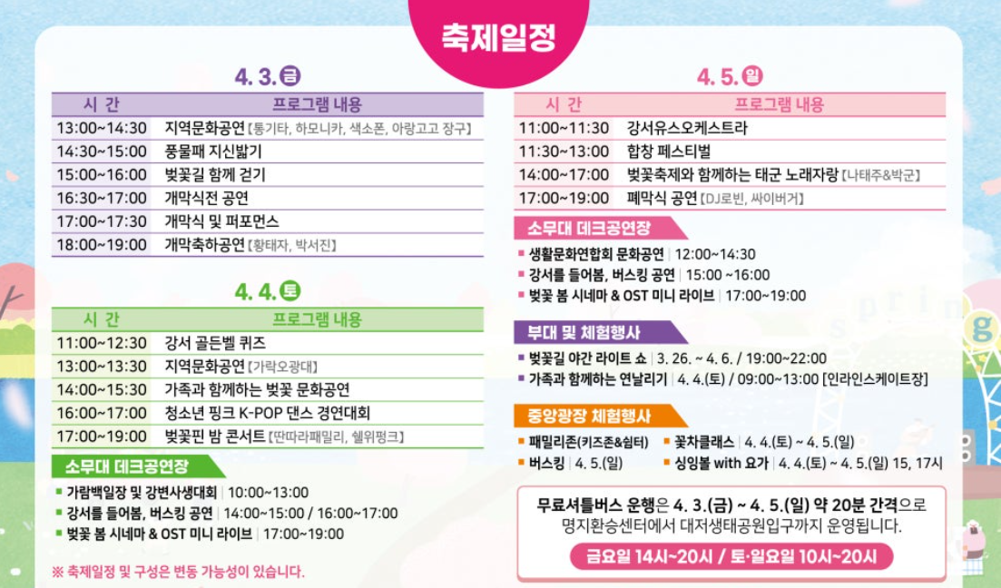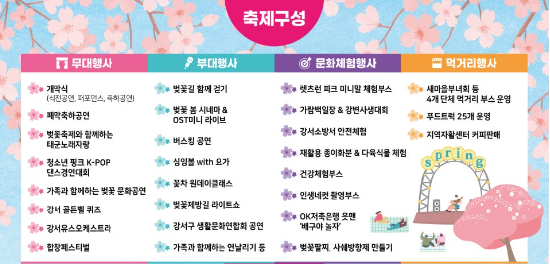'봄을 담다, 강서'라는 주제 아래, 무대행사, 문화전시체험행사, 부대행사 등