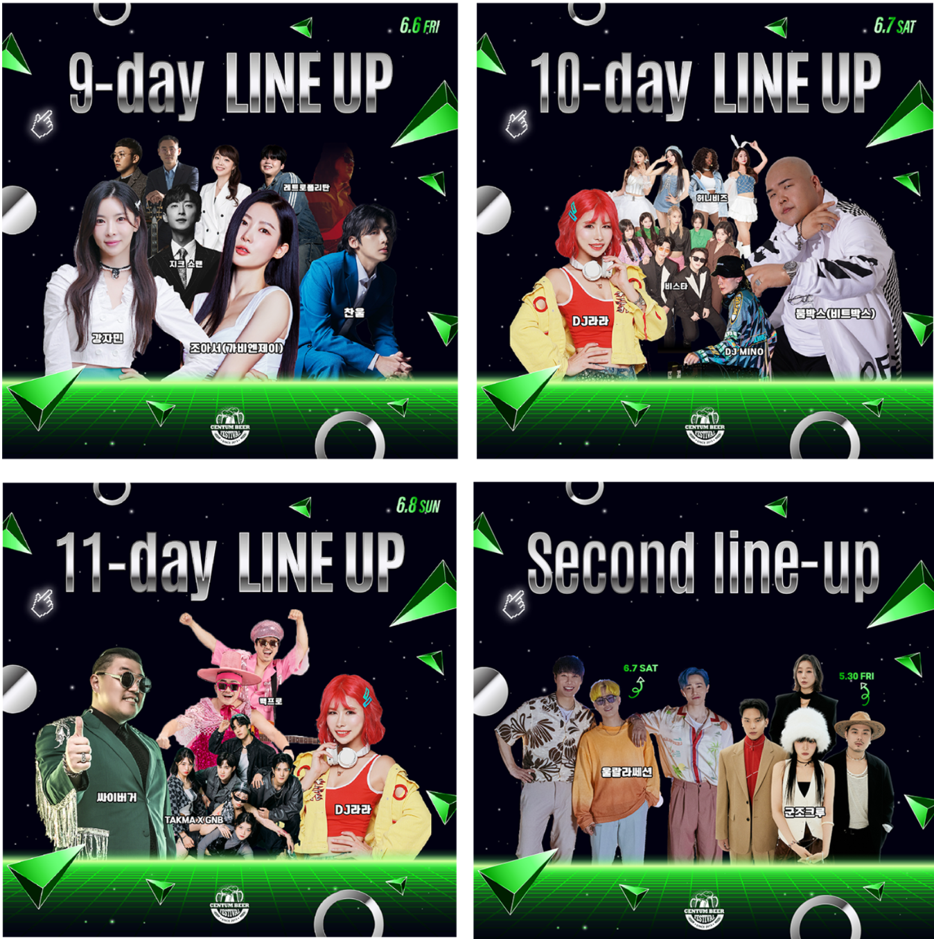 - 6월 5일(목) : 싸이버거, 허니비즈, DJ 라라, DJ TAN, 붐박스(비트박스)