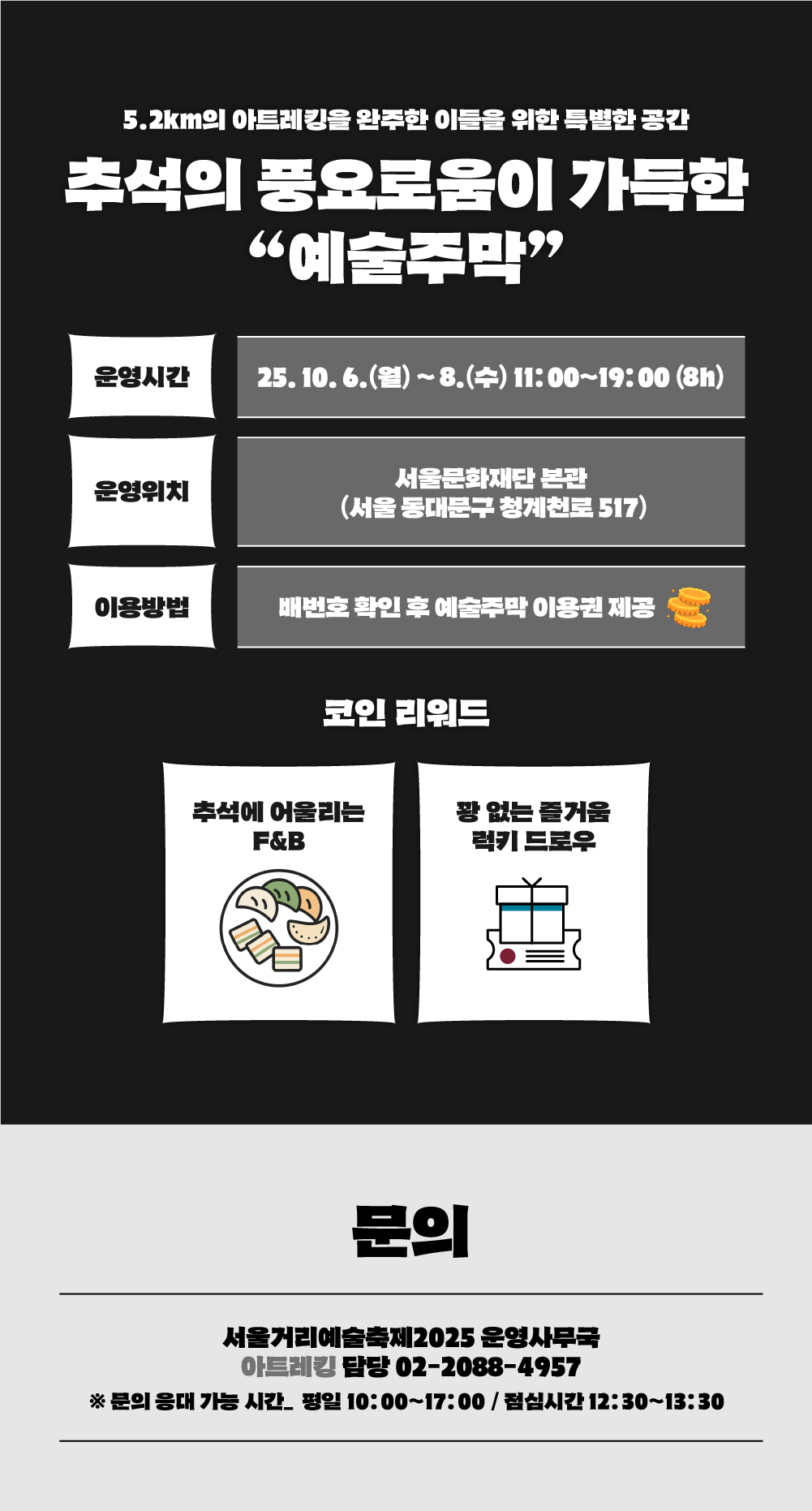 - 예술주막: 추석 분위기 속에서 즐기는 F&B & 럭키드로우 이벤트