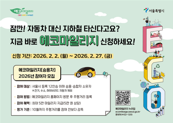 서울시 승용차 마일리지 제도는 환경 보호와 실질적인 경제적 혜택을 동시에 누릴 수 있는 훌륭한 제도입니다. 2026년 2월 2일부터 27일까지 신청을 받으니, 서울시에 등록된 차량을 보유하신 분들은 꼭 참여해보시기 바랍니다!