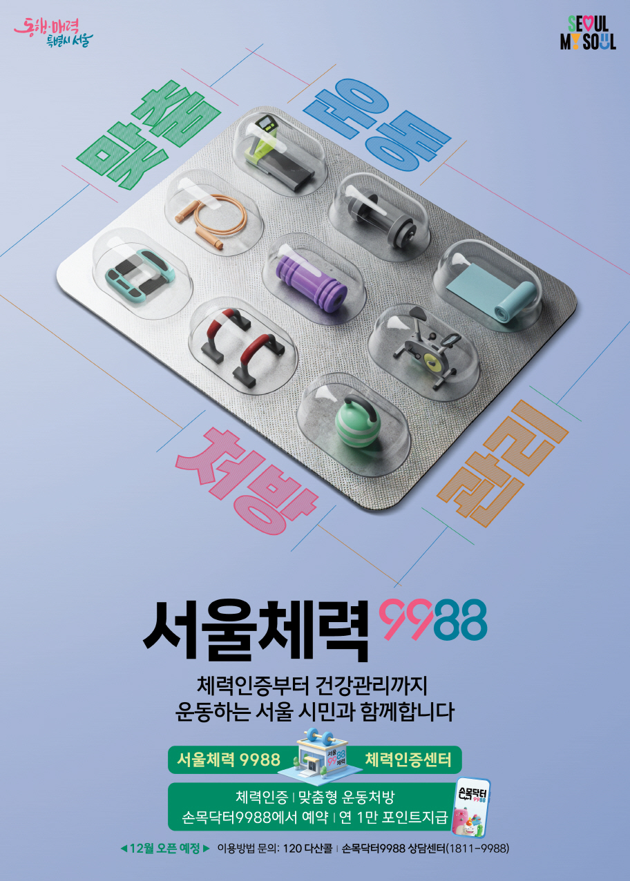👉 서울시가 운영하는 공식 건강관리 서비스〈서울체력9988 체력인증센터〉가 답입니다.