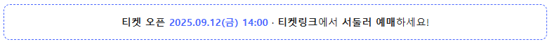 - 티켓 오픈 : 2025.09.12(금) 14:00
