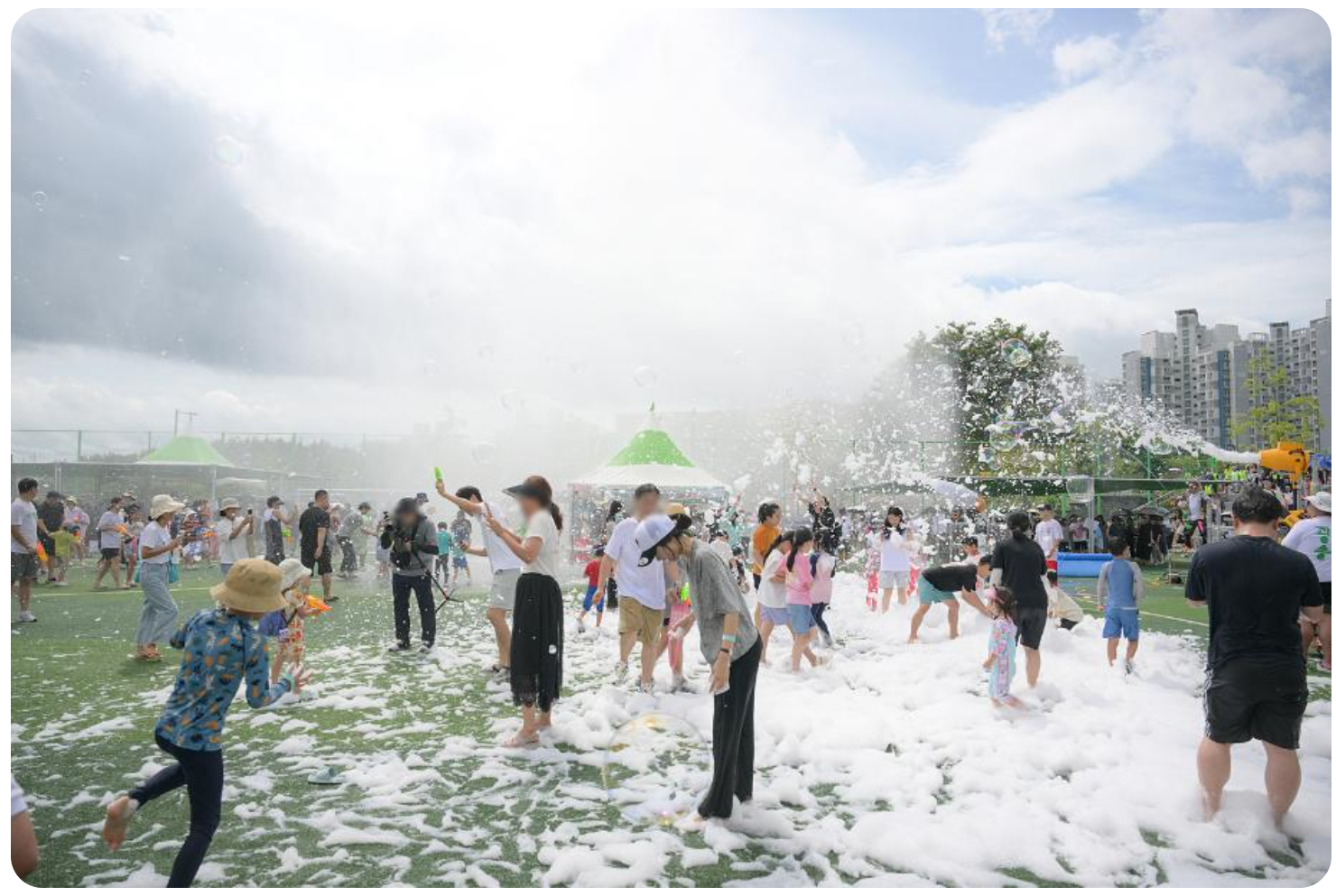 참여객과 공연진이 함께 즐기는 어울마당(토/1회, 일/1회) - 가족 물놀이 (워터밤) : 물총싸움, 거품전쟁, 워터밤, 레크레이션 등 음악과 함께 즐기는 프로그램(1일 3회)