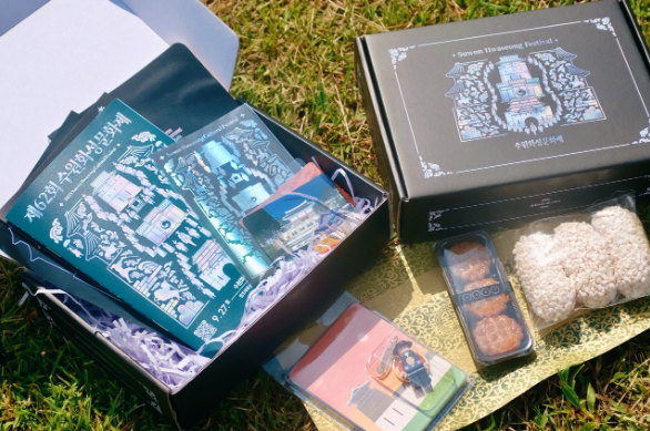 - 구성품 : 정조대왕키링, 엽서, 노트, 수원화성 포토카드, 전통간식 (약과, 다과), 리플렛, 행궁동 지도, 7개의 보물 지도