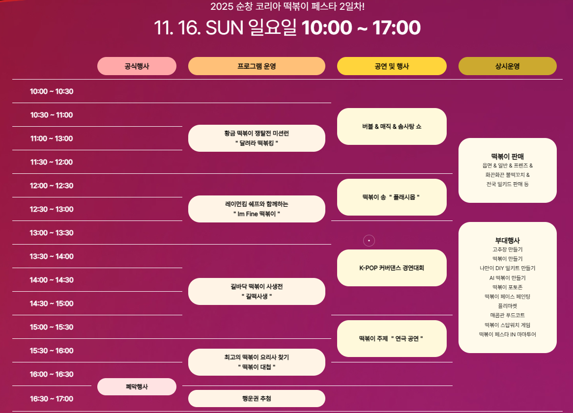 | 행사명 | 2025 순창 KOREA 떡볶이 페스타 |