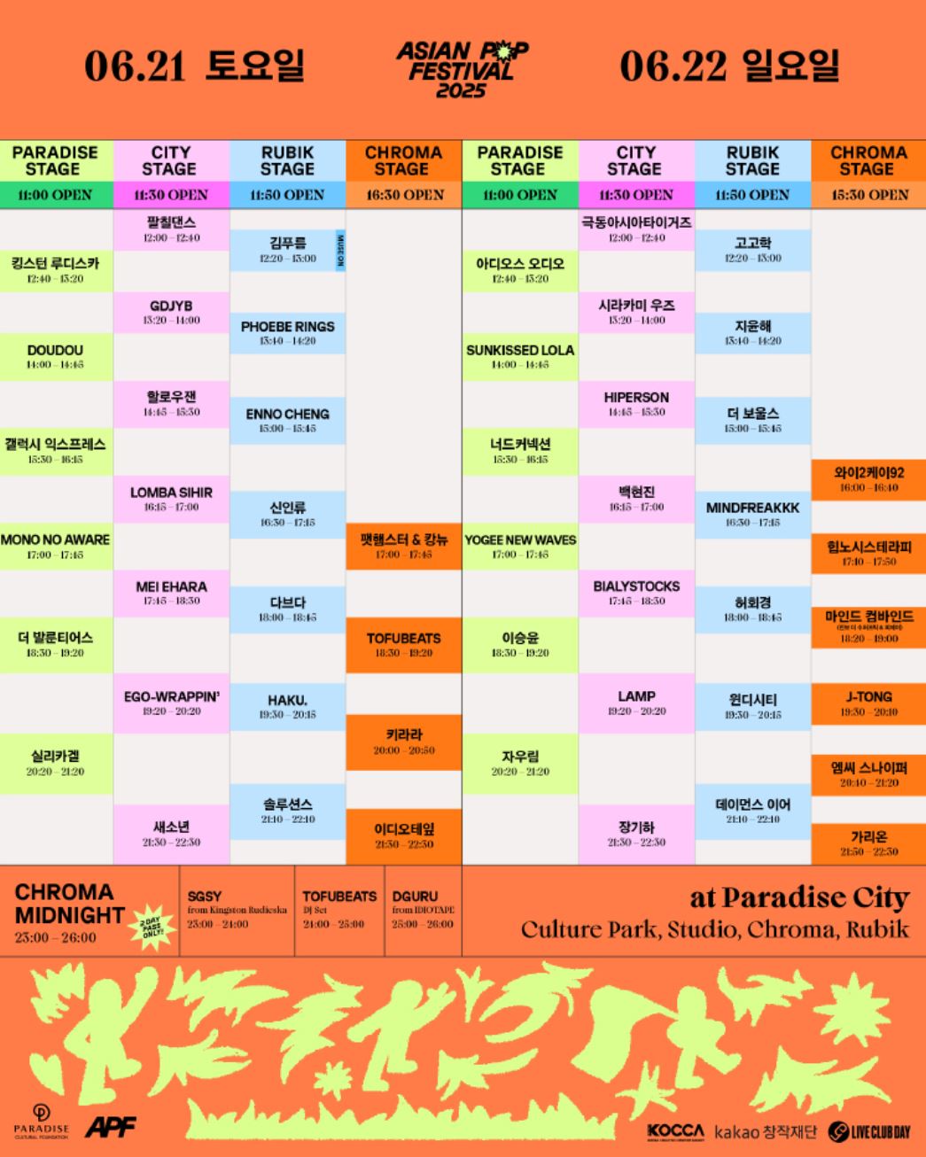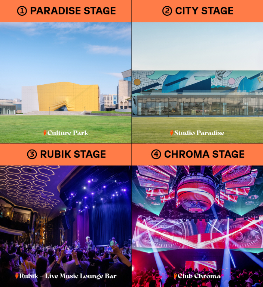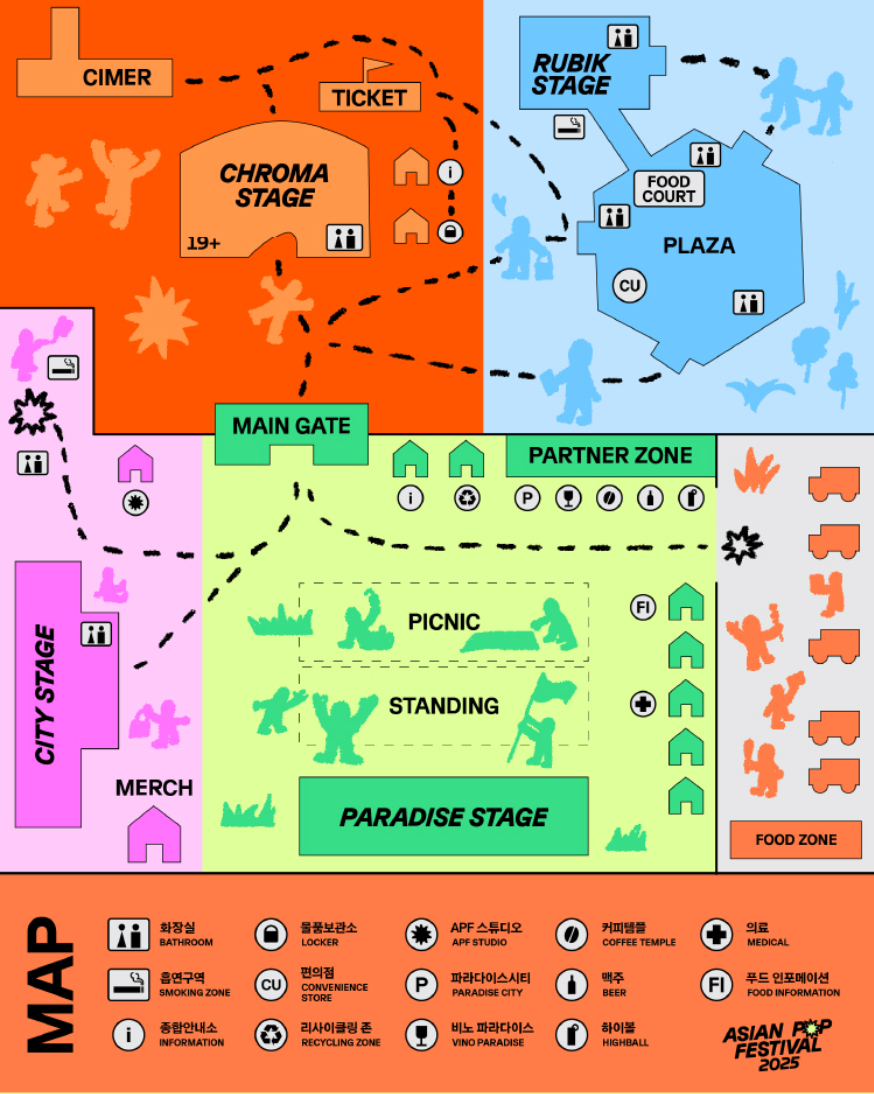 아시안 팝 페스티벌 2025는 4개의 스테이지(실내3, 야외1)로 구성