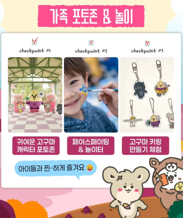 ✅ 포토존 & 가족 놀이 : 고구마 캐릭터 포토존, 페이스페인팅, 키링 만들기