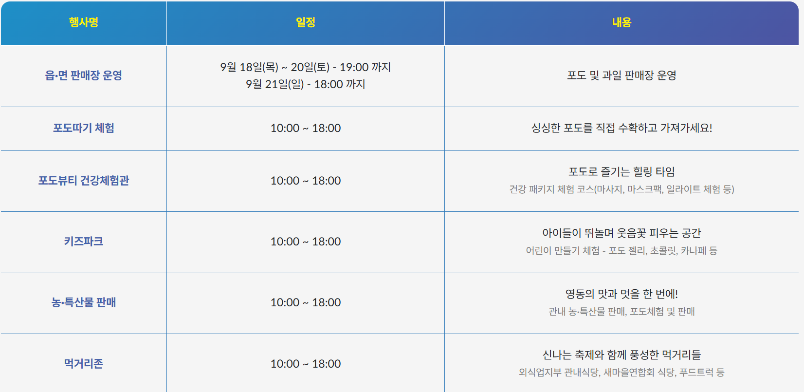 - 축제명 : 2025 영동포도축제 (제20회)
