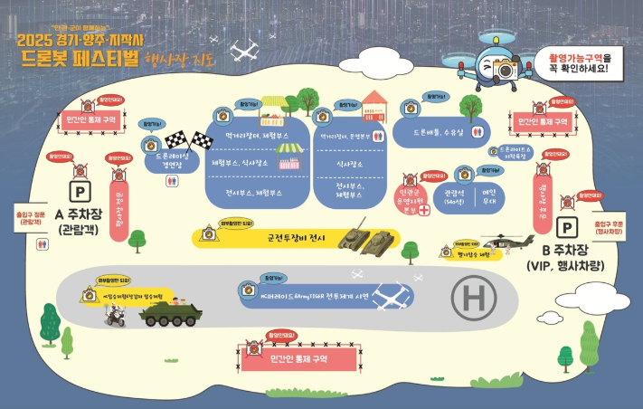 | ⚙️ 전투장비 & 드론 체험존 | 장갑차, 헬기, 로봇 등 실물 전시 및 탑승체험 |
