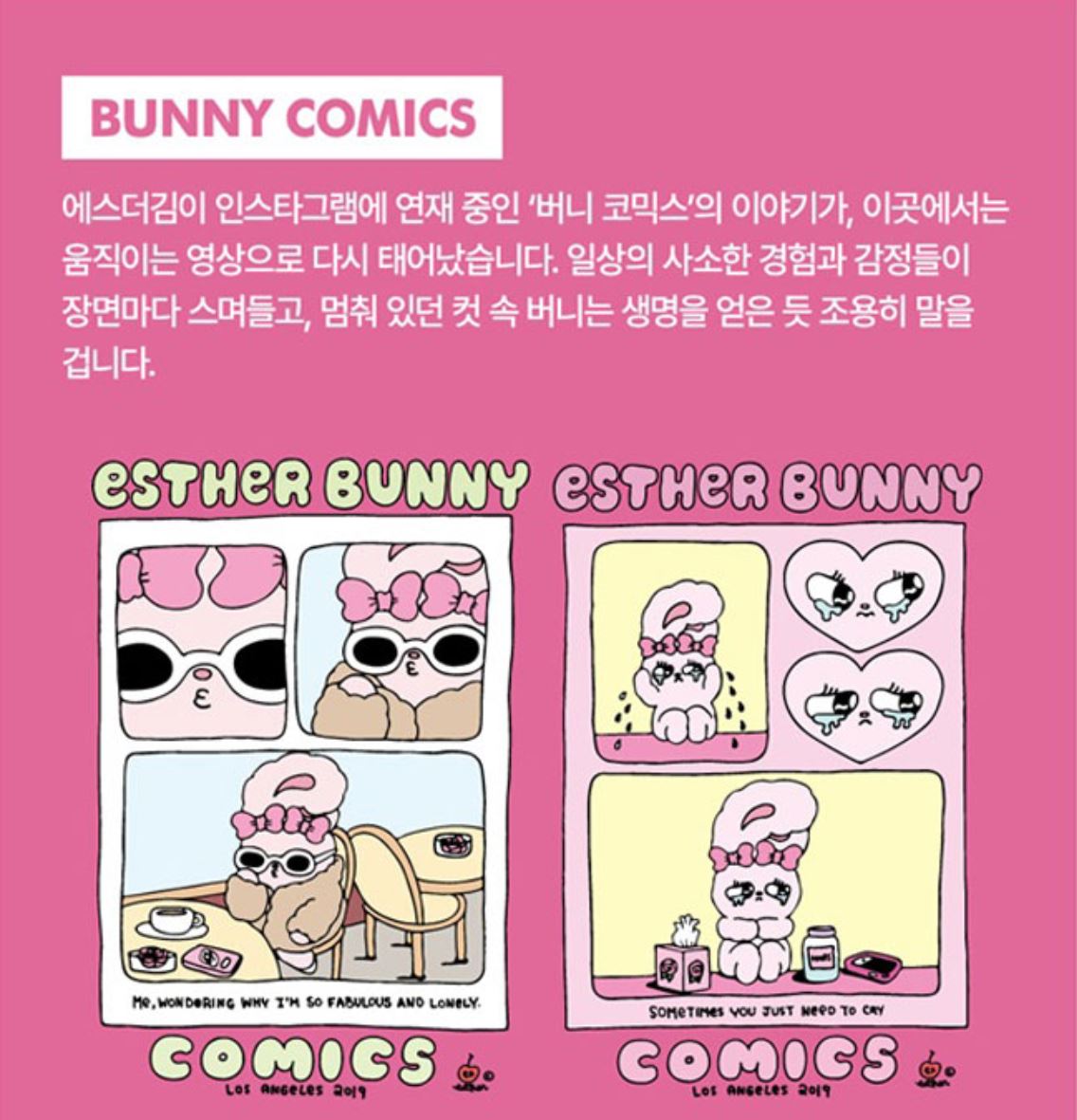 - BUNNY COMICS: 에스더김이 인스타그램에 연재 중인 '버니 코믹스'의 이야기를 시각화