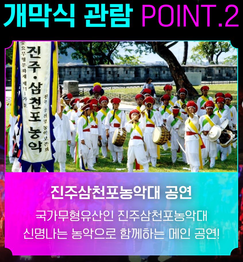 - 메인 공연 : 국가무형문화재 진주삼천포농악대