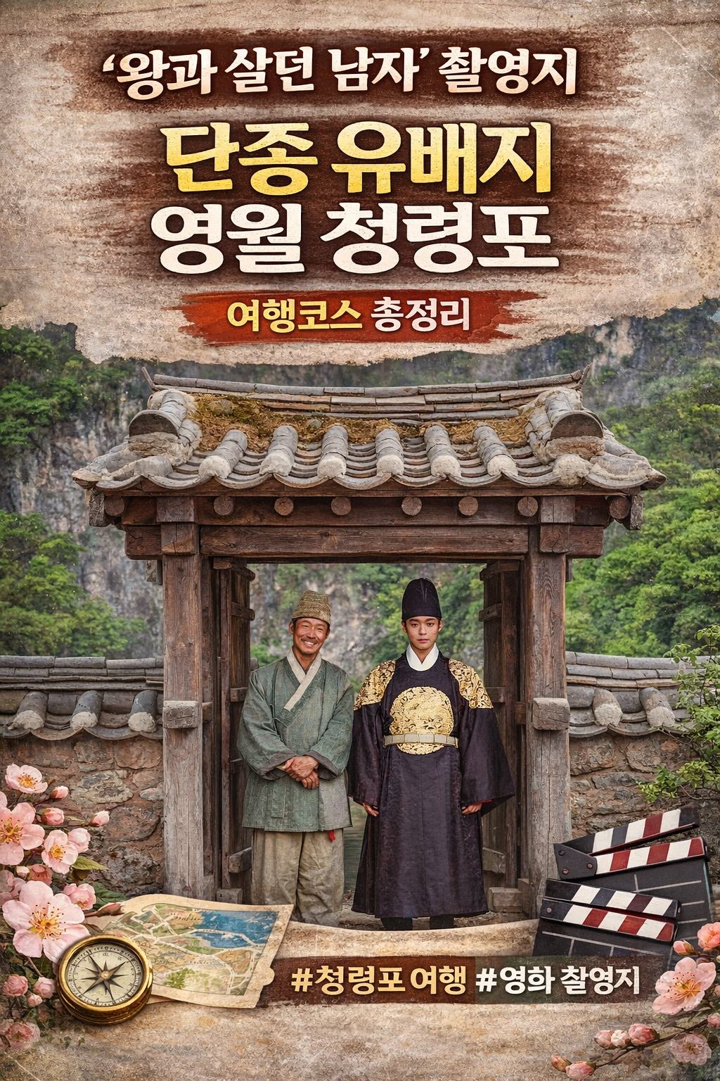 포스터 속 전통 가옥과 문간 풍경은 실제 청령포의 고즈넉한 분위기와 매우 닮아 있습니다.