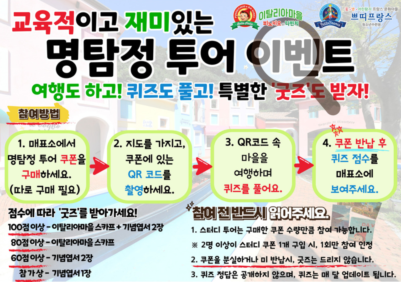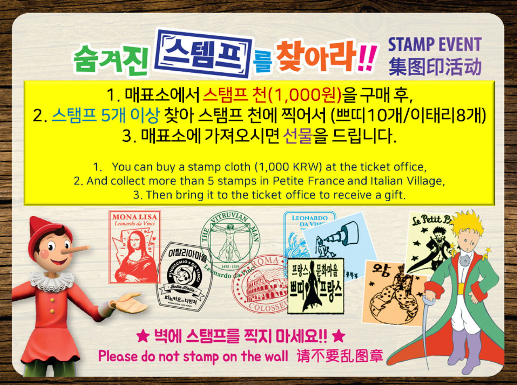 - 소인(36개월 이상~초등학생) : 쁘띠프랑스 10,000원 / 이탈리아마을 10,000원