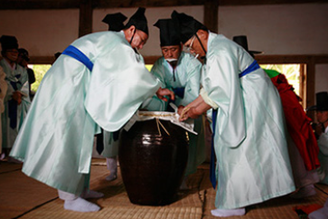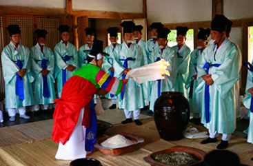 강릉단오제의 시작을 알리는 의식으로, 제사에 쓰일 신주(神酒)를 정성껏 빚습니다. 이는 본격적인 단오제가 시작되기 약 한 달 전에 이루어지는 중요한 준비 과정입니다.