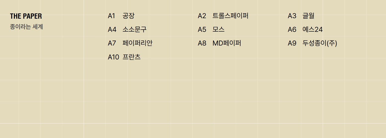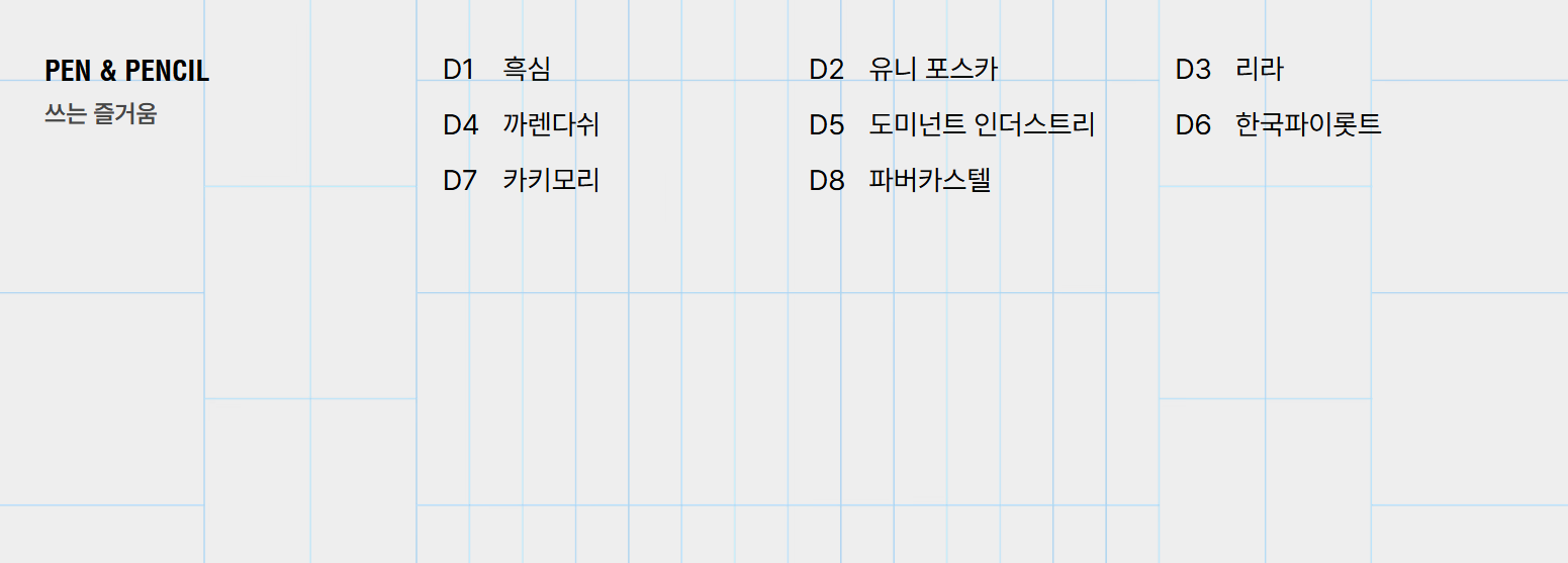 예를 들어, "The Paper" 카테고리에서는 고급 종이 제품을, "Pencil & Pen" 카테고리에서는 다양한 필기구를 만나볼 수 있습니다.
