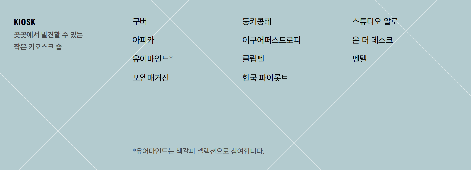 - 주제별 문구 전시 & 브랜드별 특별 이벤트 진행