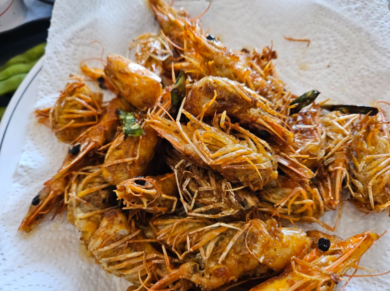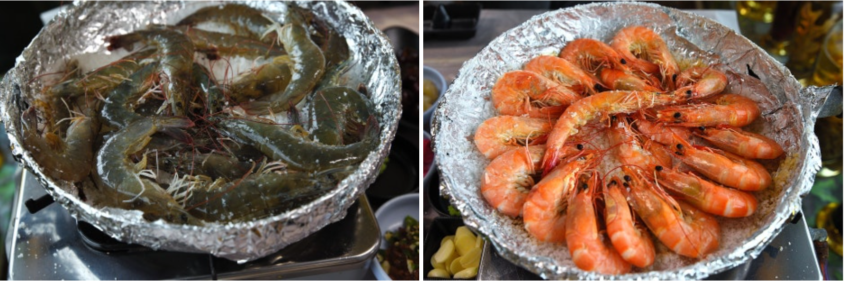 현장에서 바로 구워주는 커다란 대하를 한 입 베어 물면 고소한 단맛이 입안 가득 퍼집니다.