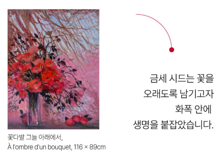 - 눈앞의 현실보다, 마음속에 다시 피어난 세계가 화폭 위에 펼쳐집니다.