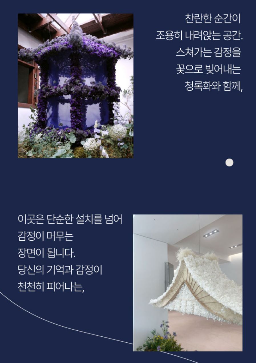 - 플라워 인스톨레이션 브랜드 청록화와 함께하는 감정의 장면.
