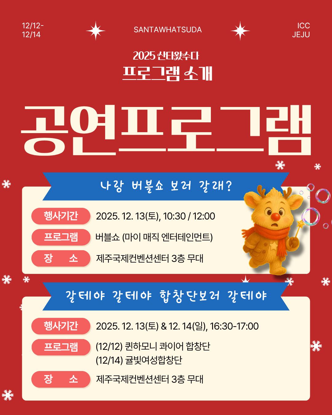🎄 [2025 산타왔수다] 제주에 산타가 온다! 크리스마스 체험·버블쇼·골든벨·루돌프 게임까지 총정리