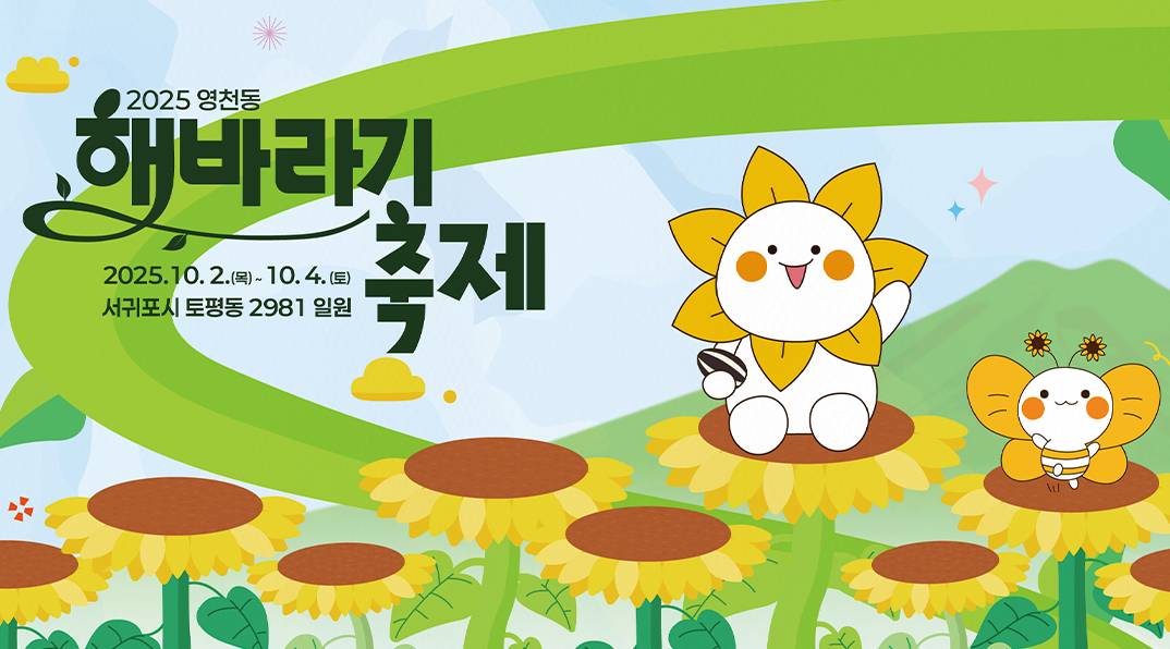 가을의 아름다움을 만끽할 수 있는 2025 영천동 해바라기 축제가 10월 2일(목)부터 10월 4일(토)까지 서귀포시 토평동 2981 일원에서 열립니다. 다채로운 공연과 체험, 해바라기 컬러런까지 준비되어 있어 가족, 연인, 친구 누구와 함께 와도 즐거운 시간이 될 거예요! 🎉