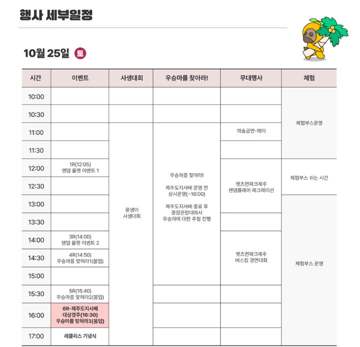 - 주최/주관 : 한국마사회, 제주특별자치도, 한국마사회 제주본부